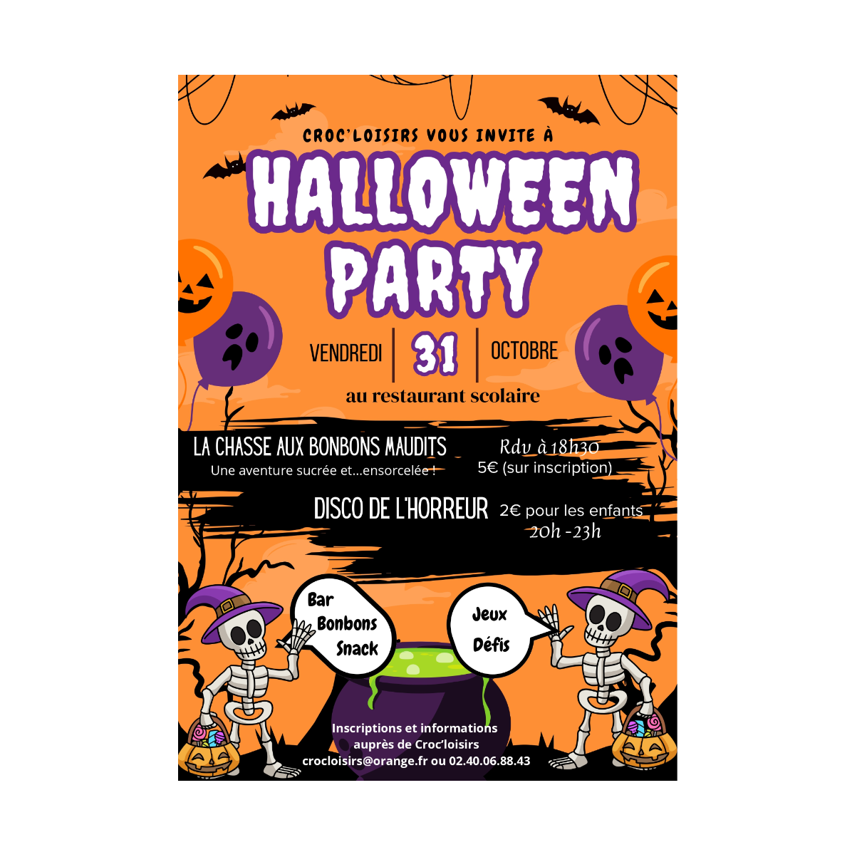 Informations et inscriptions : Croc'loisirs - 02 40 06 88 43 - crocloisirs@orange.fr