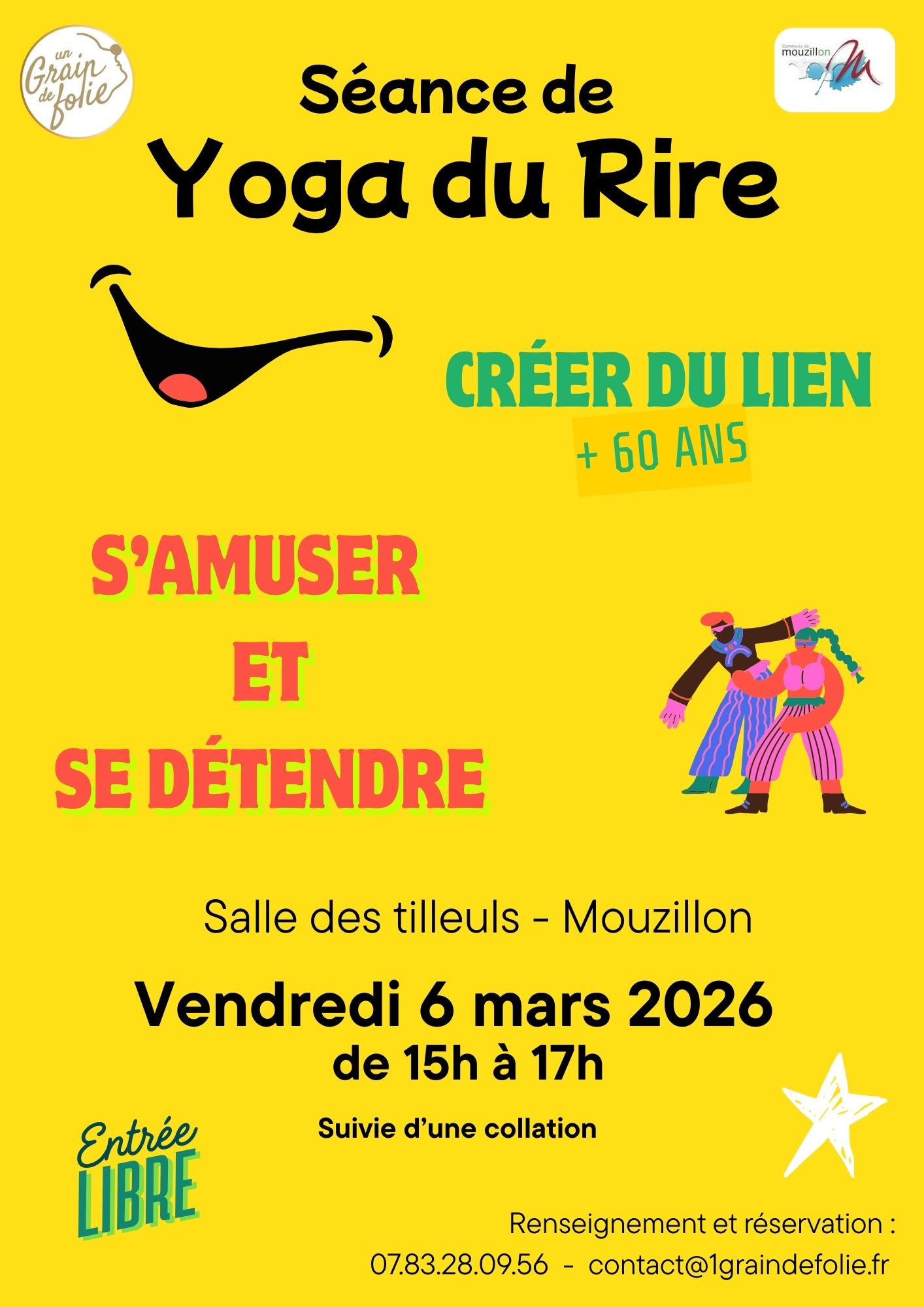 Le vendredi 6 mars, l’association Mouzillonnaise « Un Grain de Folie » organise une séance de yoga du rire