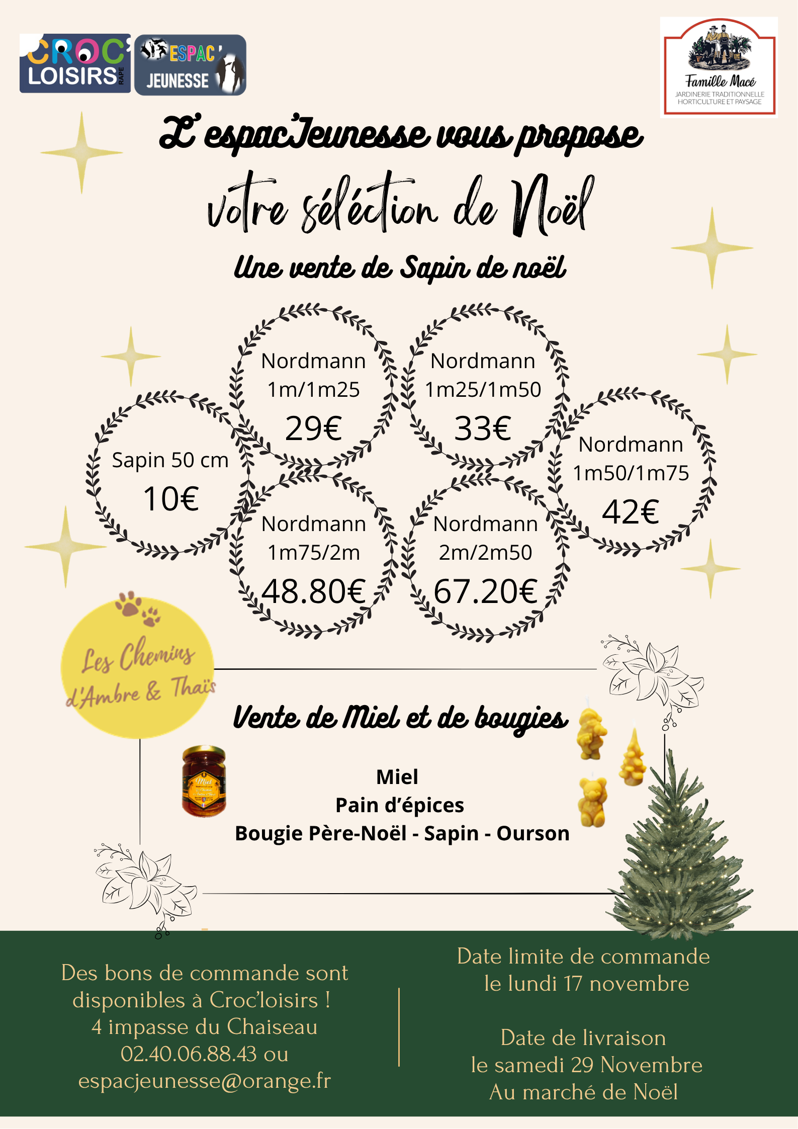 Pour préparer Noël, l'Espac'Jeunesse propose une vente de sapins, de miel, de pain d'épices et de bougies.