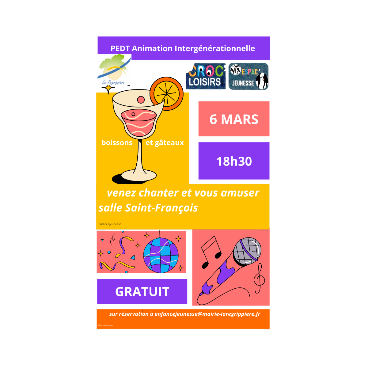 Sur réservation : enfancejeunesse@mairie-laregrippiere.fr